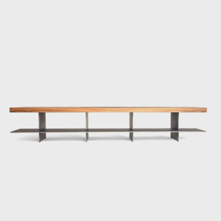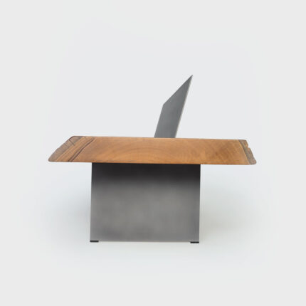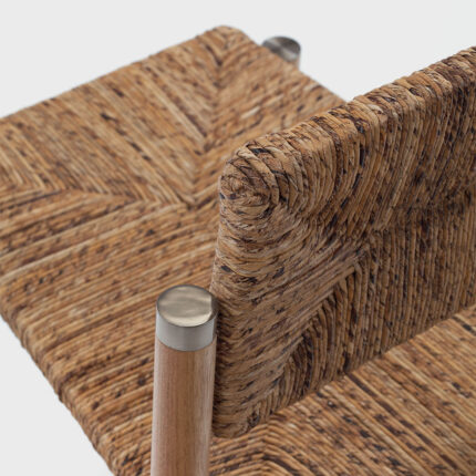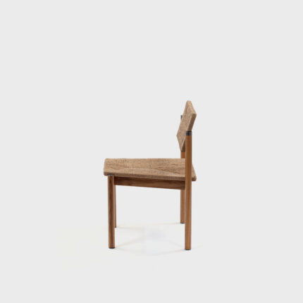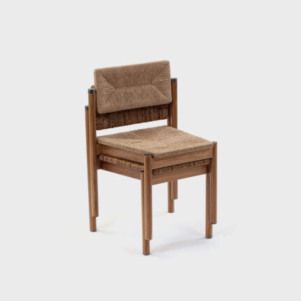 a camuçu combina leveza visual e precisão técnica em uma estrutura de freijó maciço, com assento artesanal em palha de bananeira ou palha de papel. o encosto flexível acompanha o corpo em movimento — um gesto de conforto silencioso, típico da linguagem do autor.