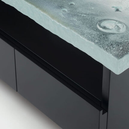 uma mesa de cabeceira especial, desenvolvido para uma cliente especial. adely recebe o tampo de 50mm desenvolvido para a mesa galo. para aqueles que não gostam do passa-fios, ela tem o fundo aberto e espaço suficiente para muitos equipamentos. simples e elegante, ela carrega nossa marca da forma mais discreta possível.