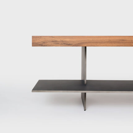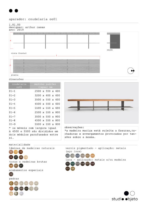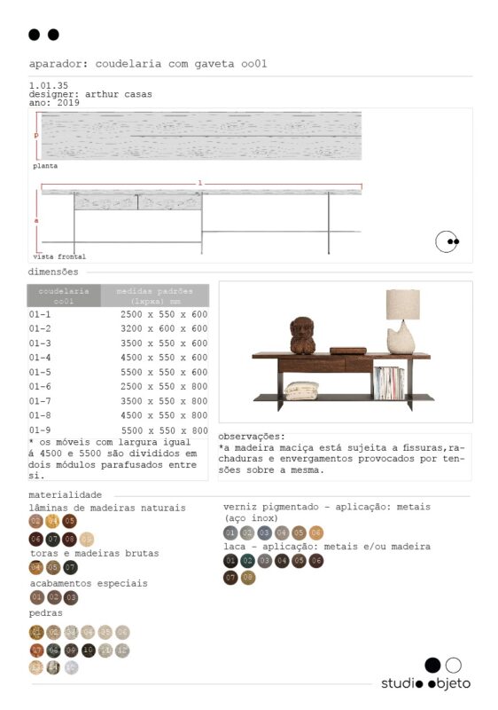 o coudelaria é resultado da busca por um aparador simples, originalmente desenhado para as costas de um sofá sem que competisse com o seu protagonismo. feito para a residência principal de uma fazenda, o coadjuvante valoriza tudo aquilo que apoia. pode ter gavetas e é perfeito para posicionar luminárias ou como estante de livros. se colocado na entrada da casa, a prateleira mais baixa é ideal para guardar sapatos do dia a dia.