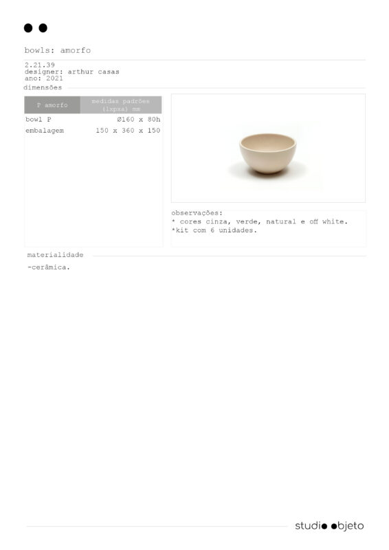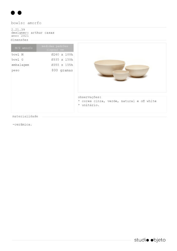 arthur casas tem fascínio por desenhar formas amorfas, aquelas que na natureza não apresentam forma fixa ou estável. São muitas tentativas para alcançar o contorno ideal, como se ele encontrasse o instante perfeito de congelar algo vivo e mutante. o conjunto de louça em cerâmica de alta temperatura é formado por três tamanhos de prato e quatro tamanhos de tigelas. podem ser combinados às xícaras e cumbucas da mesma série.