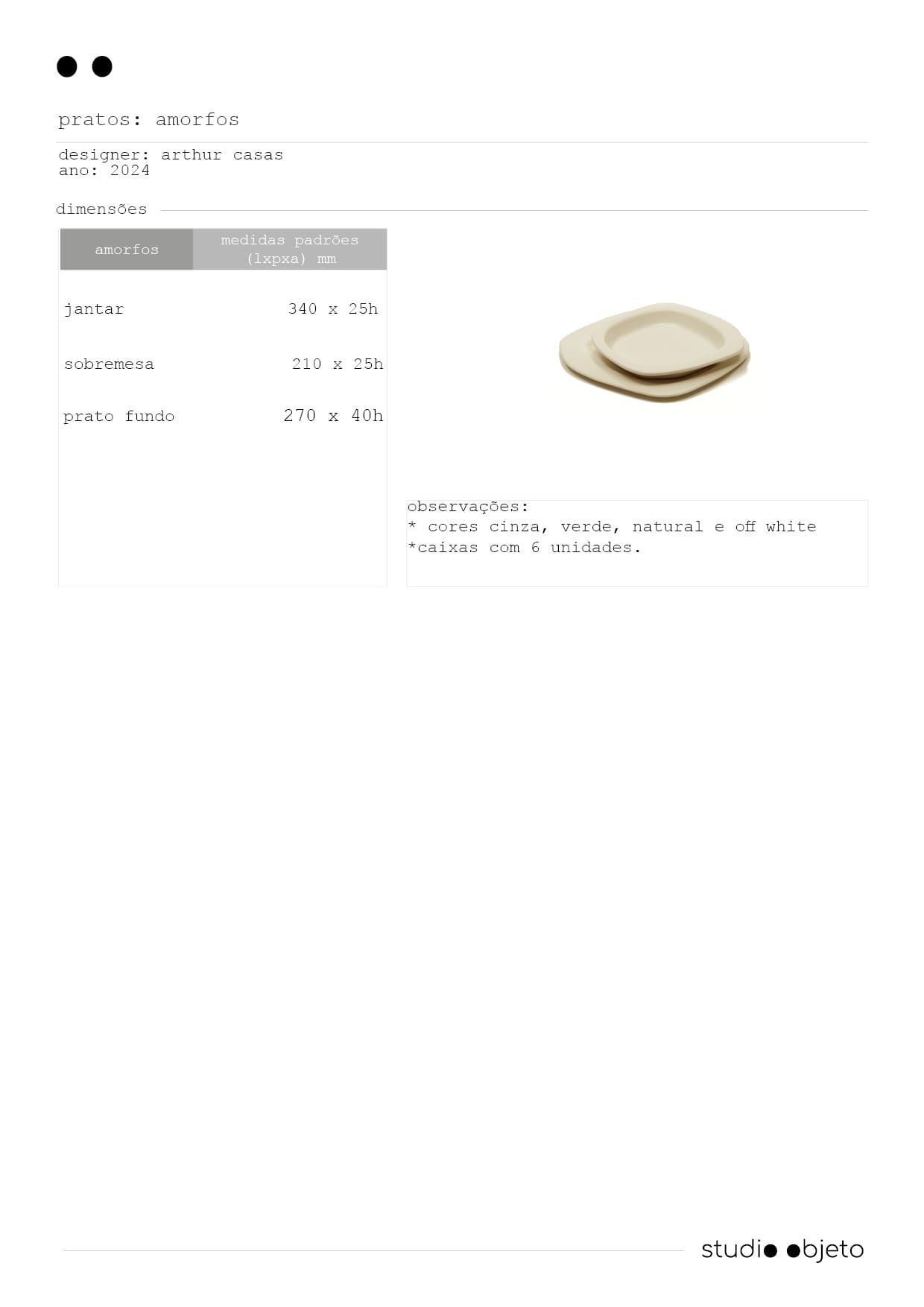 arthur casas tem fascínio por desenhar formas amorfas, aquelas que na natureza não apresentam forma fixa ou estável. são muitas tentativas para alcançar o contorno ideal, como se ele encontrasse o instante perfeito de congelar algo vivo e mutante. o conjunto de louça em cerâmica de alta temperatura é formado por três tamanhos de prato e quatro tamanhos de tigelas. podem ser combinados às xícaras e cumbucas da mesma série.