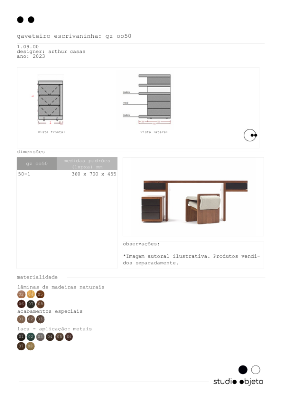 feita em madeira, a escrivaninha faz parte de uma coleção que inclui um carrinho lateral desenhado pela equipe do studio objeto.