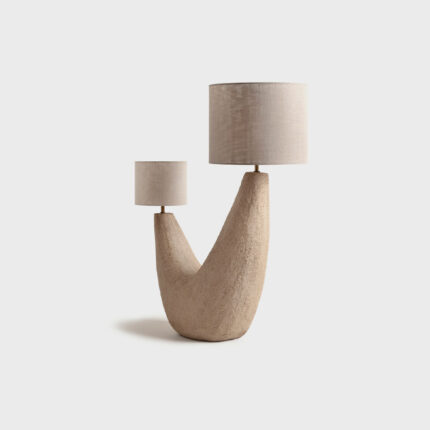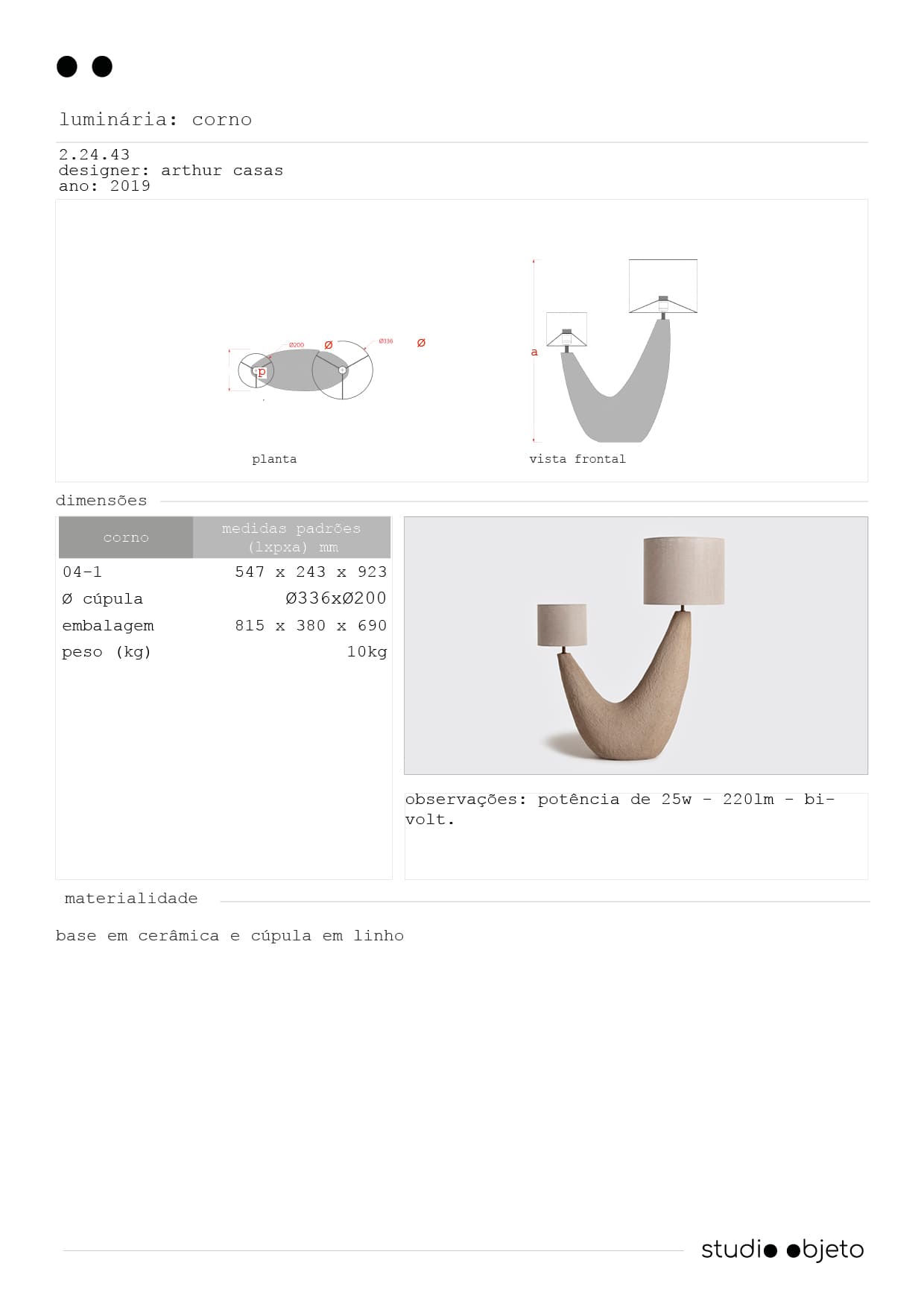 o surgimento do studio objeto está ligado a projetos de arthur casas que não haviam encontrado caminho para sua concretização. essa coleção de luminárias estava há anos na gaveta. nela o arquiteto brinca com formas orgânicas que lembram a de seixos, exagerando em sua expressividade, como se fossem balões inflados assimetricamente. foi desafiador encontrar o parceiro ideal para produzir as bases em cerâmica, tanto pela dimensão das peças quanto pelo tom e textura arenosa específicos. as cúpulas em linho cru completam a originalidade do conjunto.