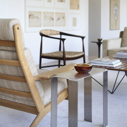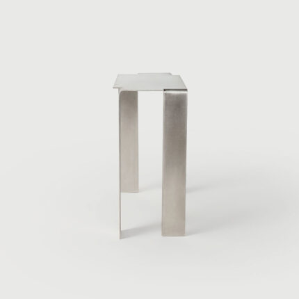 um plano que ganha tridimensionalidade apenas com corte e dobra. essa é a ideia por trás da mesa lateral amilcar, feita com uma única chapa metálica. leva o nome do artista mineiro amilcar de castro pois remete às suas esculturas realizadas com a técnica ímpar.