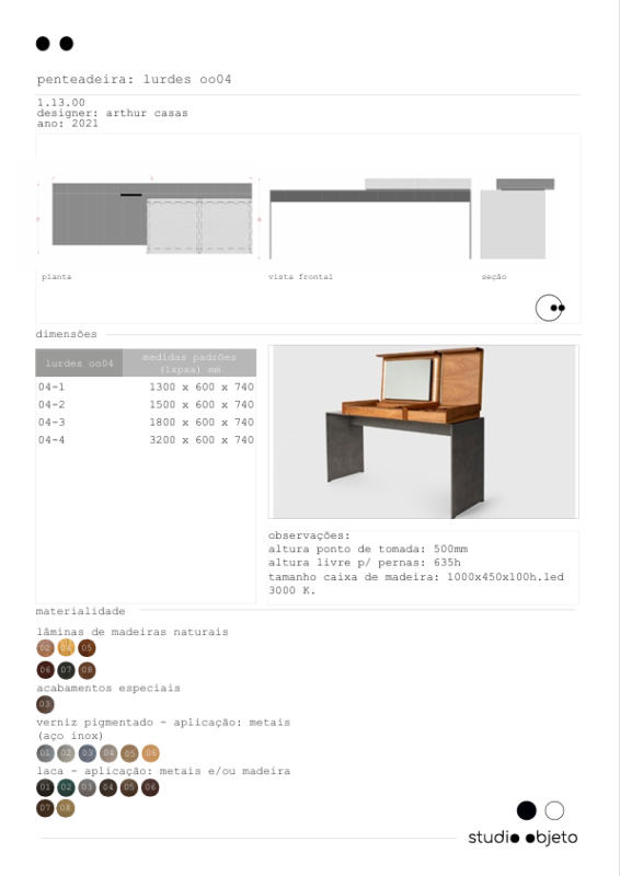 lurdes, ao encomendar uma nova casa ao arquiteto arthur casas, pediu-lhe uma penteadeira sob medida, na qual pudesse se arrumar e guardar maquiagens. o arquiteto desenhou a peça pensando-a como um produto multiuso; todo o conteúdo fica oculto quando a penteadeira não está em uso e ela pode ser também escrivaninha ou mesmo mesa de cabeceira. evoluímos o projeto ao adicionar led, ajuste de altura no espelho, e as indispensáveis tomadas e entrada USB, além de nichos revestidos em camurça, para joias.