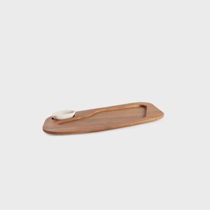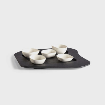 arthur casas tem fascínio por desenhar formas amorfas, aquelas que na natureza não apresentam forma fixa ou estável. são muitas tentativas para alcançar o contorno ideal, como se ele encontrasse o instante perfeito de congelar algo vivo e mutante. a cumbuca faz parte dos produtos gerados a partir dessa pesquisa. Feita artesanalmente em cerâmica de alta temperatura, é um produto delicado e poético. a bandeja que a acompanha é produzida em madeira com tratada, que garante a resistência à umidade.