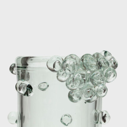as esferas de vidro são inseridas livremente, sem rigidez ou regras, permitindo que o acaso e a transparência do material revelem sua beleza única. cada vaso é uma expressão de movimento e fluidez, um reflexo da delicada relação entre o gesto do artesão e a matéria em seu estado mais puro.