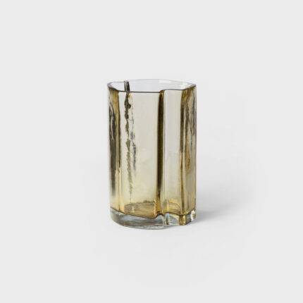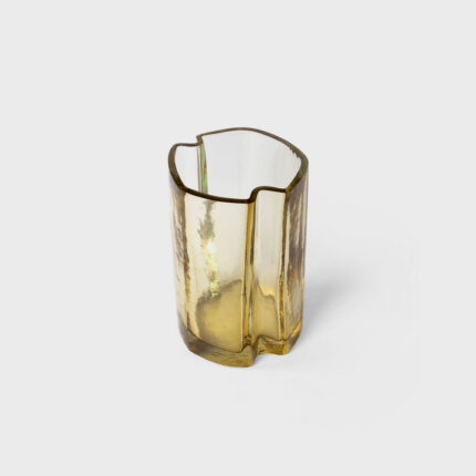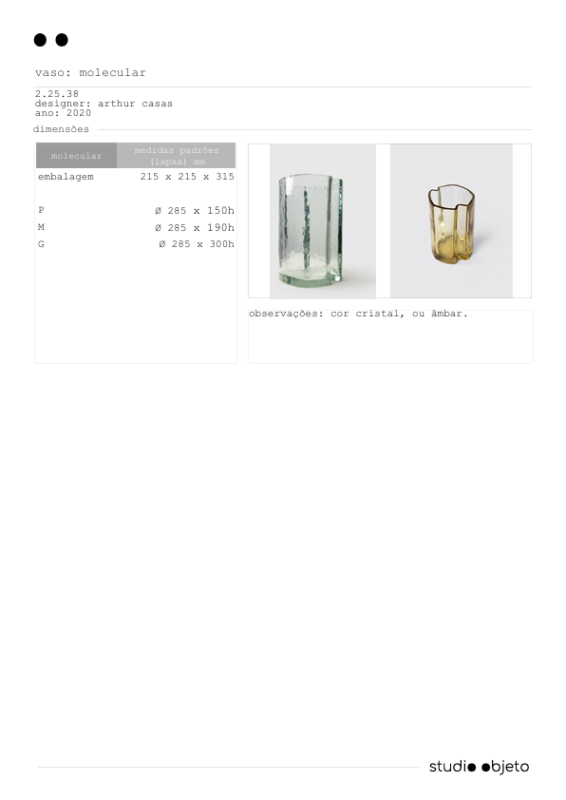 o vaso de cristal molecular é modelado e lapidado à mão, pelo processo de sopro no molde. o interior do vidro espesso nunca é idêntico um ao outro, pela textura rugosa e única que a massa ganha internamente. são quatro modelos que funcionam separados ou em composições, com ou sem flores.